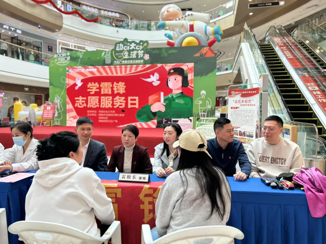 活动当天,律师团队在广场设立公益法律咨询台,悬挂“学雷锋律师与你同行”主题横幅,吸引了众多市民驻足参与。律师们结合自身专业优势,围绕婚姻家庭、财产分割、劳动权益、消费者保护等群众关心的法律问题,耐心解答咨询,普及法律知识。